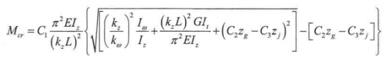 For all other sections the Lateral Torsional Buckling check is executed in which the elastic critical moment for Lateral-Torsional Buckling Mcr is determined by the following formula Ref.[9]: