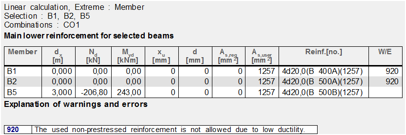 W920 - Použitá nepředpínací výztuž není povolena z důvodu nízké tažnosti