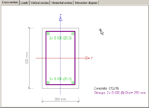 Ukáže průřez, jeho rozměry a zadanou výztuž. |