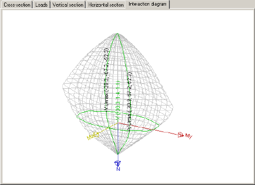 Je-li požadováno, může být vybraný prut detailně posouzen. K tomu stiskněme tlačítko [Posouzení prutu] mezi aktivními tlačítky ve funkci Interakční diagram.