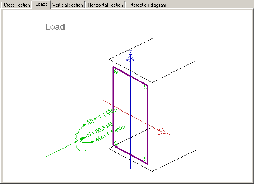 Zde je ukázán posuzovaný prut. K výběru požadovaného řezu pro posouzení může být použit kurzor myši. Pop-up menu může být použito pro ovládání nastavení pohledu. |