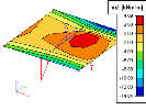 Výsledky jsou zobrazeny podél definovaného řezu napříč deskou. Pomocí funkce Nastavení > Měřítka lze nastavit velikost grafu. |