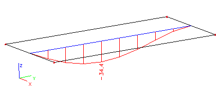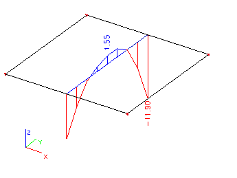 Nakonec zobrazme vypočtený ohybový moment My. Při použití výchozího nastavení (parametr Řez je nastaven na Vše) může graf vypadat následovně: