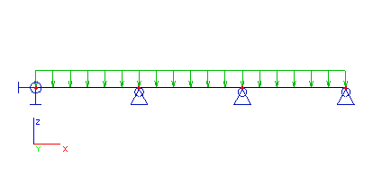 Předpokládejme, že máme jednoduchý spojitý nosník o třech polích, na který působí rovnoměrné zatížení. Tento nosník je definován jako skupina tří vzájemně spojených nosníků.