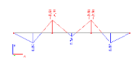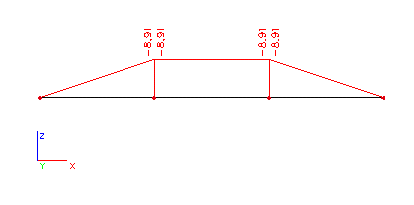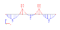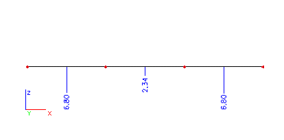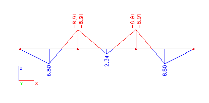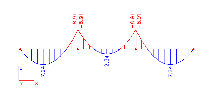 Nyní změňme nastavení parametru Řez na Konce. Vypočtený ohybový moment bude popsán pouze na koncích jednotlivých nosníků.