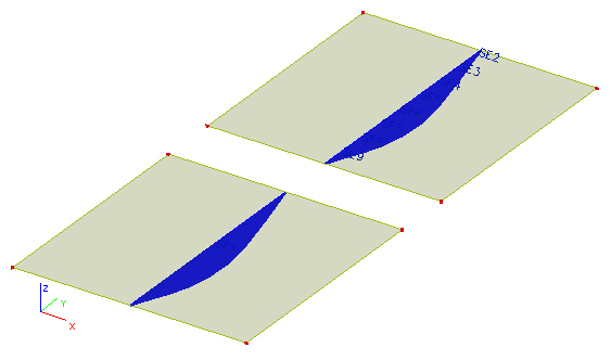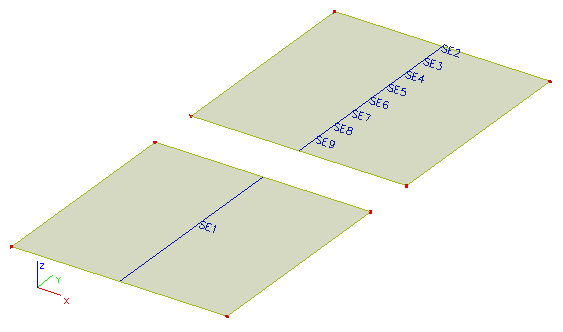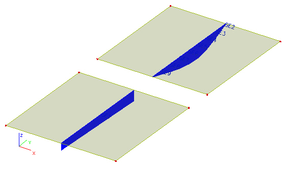 Pro lepší pochopení jednotlivých možností si můžeme zadat dvě stejné desky, na které působí stejné zatížení. Dále si definujme řez každou z těchto desek. První deska má definován řez po celé šířce. U druhé desky rozdělíme řez na osm intervalů, abychom dostali jemnější výsledky – viz obrázek níže.