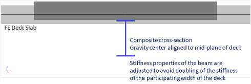v tomto případě se spřažený nosník modeluje jako žebro desky bez excentricity. Smykové spojení může být úplné nebo částečné. Aby se uvažovalo spřažení, tuhost nosníku se upraví tak, aby zohlednila vliv excentricity a spolupůsobící šířky desky. Pokud se deska uvažuje jako konečně-prvková deska, získají se vnitřní síly pro spřažené posudky integrací spočtených napětí v ocelovém nosníku i v desce.