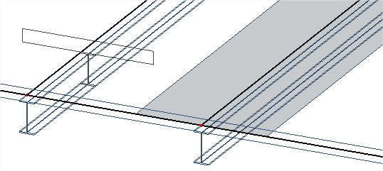 In the example above, the span is composed of 3 beams. The span is simply supported. Two possible boundary conditions at 1/3 and 2/3 of the span are disabled, because there is no support nor supporting column in those points.