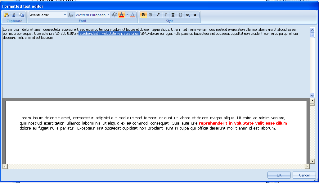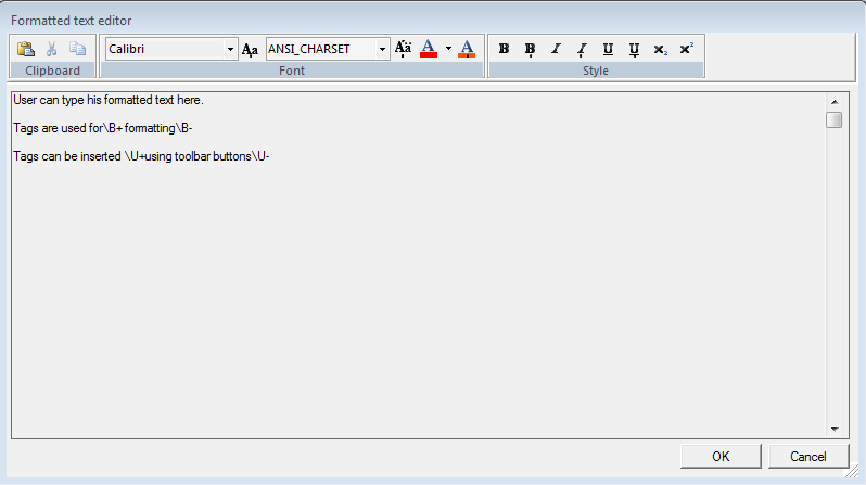 Toto tlačítko otevře Editor formátovaného textu, kde může uživatel zadat svůj text.