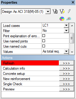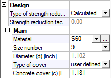Here user may check or even adjust important design material characteristics of concrete and non-prestressed reinforcement steel.