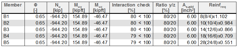 All results in concrete with exception of service Concrete slenderness |