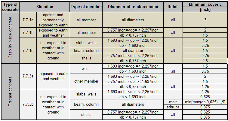 - Precast - minimum concrete cover is calculated according to clause 7.7.3