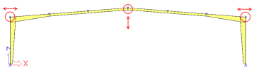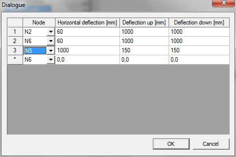First, the program calculates the values of the deflections in all defined nodes. Then it compares these values with the limits of deflections. If the calculated values of deflections are smaller than the limits of deflections then the design of frames is OK and the SLS design stops. Otherwise the program starts a new Autodesign loops. The program checks both horizontal and vertical deflections in all nodes. The following picture shows an example of typical critical nodes of a simple frame.
