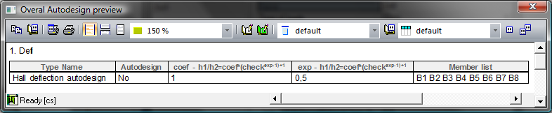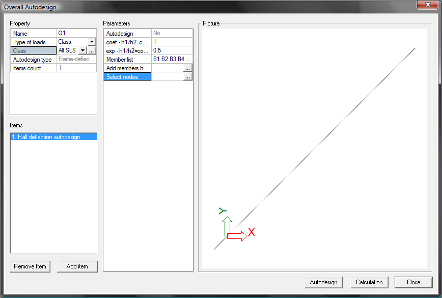 It is necessary to use a class as a type of load, otherwise the frame-deflection Autodesign will not work correctly.