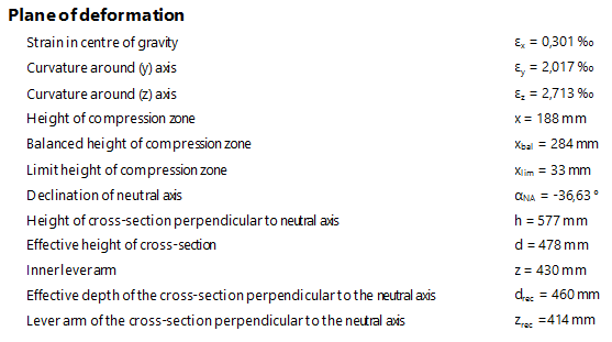 - Detailed - first gives an overview of the input data, then followed by a detailed calculation - very detailed output coming from SCIA Design Forms. It also includes dynamic images displaying:
