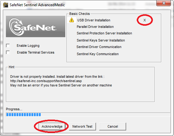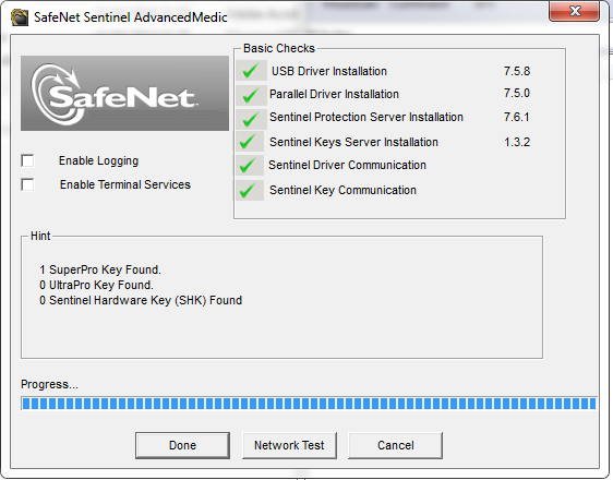 - If it does not show at least 7.5.8 behind “USB Driver Installation”, then run the Sentinel Protection Installer (http://www.safenet-inc.com/support-downloads/sentinel-drivers/)