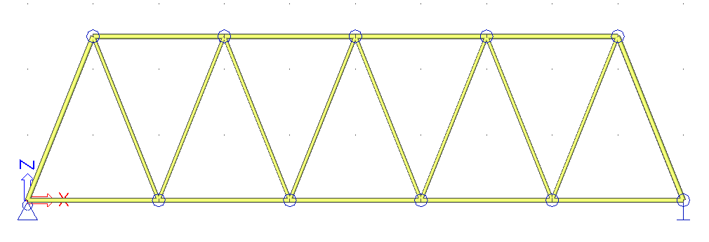The structure is a simply supported truss girder with the span of 10 metres, see the next picture. The goal of optimization is find optimal height of the truss (which will most probably vary along the girder length, see results at the end of this tutorial).