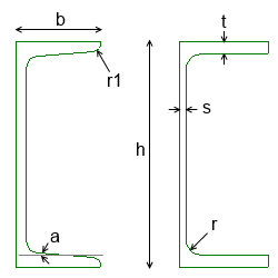 Radius at flange toe |