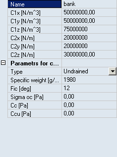 C parameters representing the subsoil properties. (see also Subsoil parameters for subsoil under a beam). |