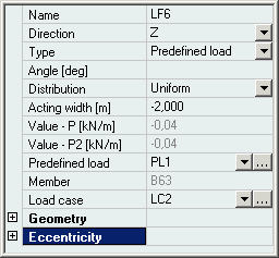 The property dialogue gives enough space for additional information, and thus the input load width and calculated load intensity are shown – see value P.