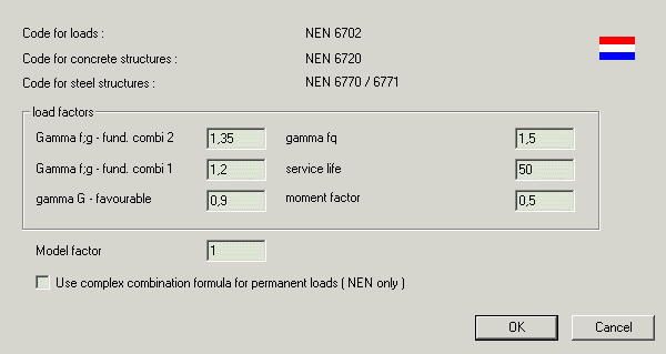 This factor is entered for each group of variable load cases (NEN – mom. factor) Default value : 0.5. |