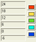 Importantnote: The option with user adjustable palette values requires that maximum and minimum value of the corresponding quantity is know. These two values become known only after the quantity has been displayed on the screen at least once. Therefore, until you display the result diagrams on the screen using action button [Refresh], it is not possible to select the type of palette values.
