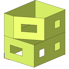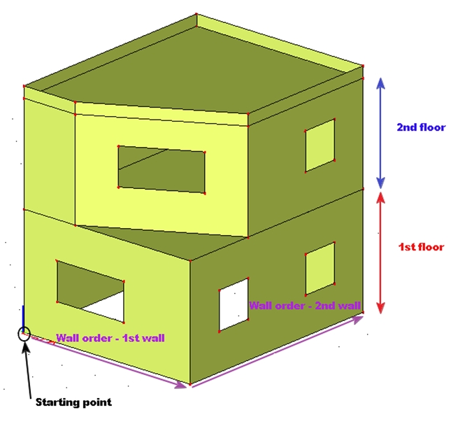 - The second floor is defined by 5 walls and we use ray under 30 ° angle to create the 3th wall as inclined wall.