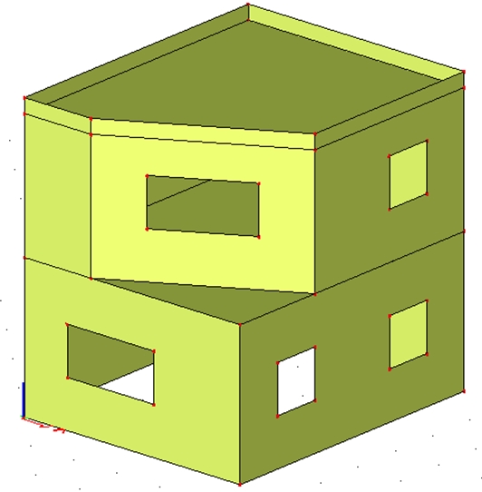 - Create the first level of our building on working plane. We will create 4 walls, 1 plate and some openings. Activate the dotgrid snapping to define the size by the simplest way.