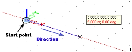 - The 1st wall starts in point 0,0,0. The length is 5m. The tracking tooltip shows the distance