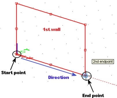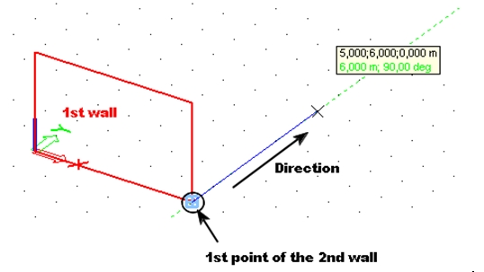 - Create the 2nd wall from end point of the 1st wall. Length of the 2nd wall is 6m. See the next picture.