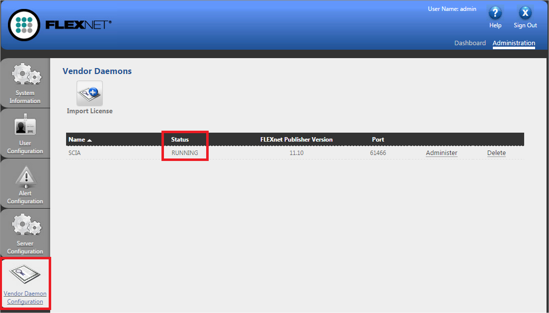- Go to Vendor Daemon Configuration and check if Status = RUNNING.