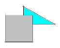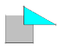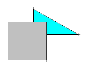 Het vierkant is van hogere prioriteit, zijn vorm wordt als de leidende genomen, en een gedeelte van de driehoek wordt automatisch afgesneden.