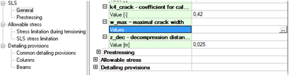 It means the program verifies the type of the structure, the selected combination in the service and defined exposure class on whole structure or on the selected member. The decision when the check of decompression is done is based on the special table in the national annexes. Table is placed in Concrete > SLS > General as value wmax – for prestressed concrete.
