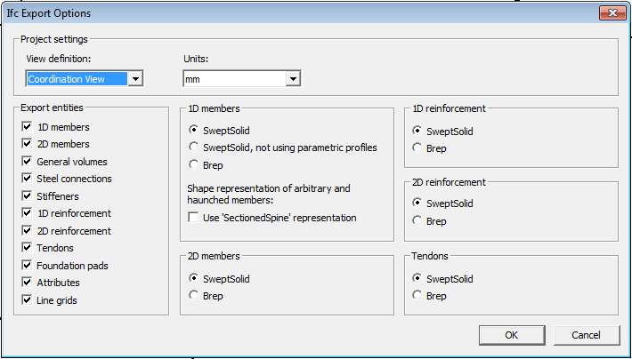 Internal and free tendons can be exported as AdvancedSweptSolid or Brep. For import as native SCIA Engineer element only AdvancedSweptSolid representation is supported. Tendon with Brep is imported as a general volume.