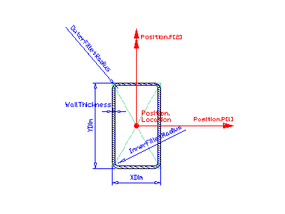 | Profile Library (rectangular hollowed section): CFRH, F, HSS, J, MSH, QRO, RHS, RHSCF,RRK, RRO, RRW, SHS, SHSCF, VHP | IfcRectangleHollowProfileDef |