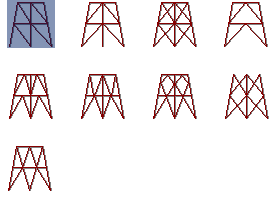 SCIA Engineer offers a whole set of masts, or we can say towers, with different arrangement of diagonals. The user thus can select the required type. It may however happen that none of the pre-defined shapes satisfies particular needs and the user needs to define a mast of type that is not in the library. Then it is possible to select the most similar, or the closest, type, insert it into the project and subsequently apply modification functions (e.g. delete, move, copy, etc.) to adjust the shape as necessary.