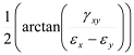 Angle of principal strain on negative surface |