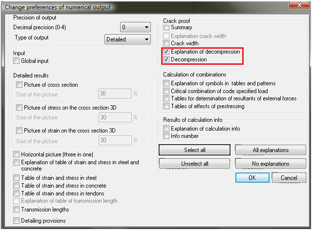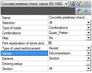As was written above the check of decompression is performed in service for prestressed concrete Crack control. New value decompression was implemented.
