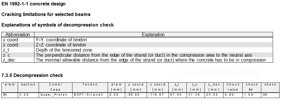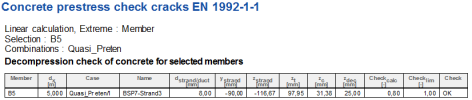 The check of decompression has been implemented in the prestressed crack control check as new additional value. Generally the check is implemented in Member check and in Single check as well.
