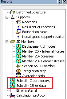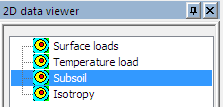 The soil-in results are available in two different services. In the “Calculation, mesh” service is 2D data viewer. There are results for Subsoil.