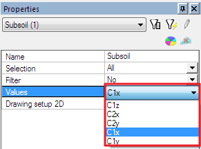 When the Soilin type of the support is used then the preview Subsoil – C parameters displays the same results as 2D data viewer.