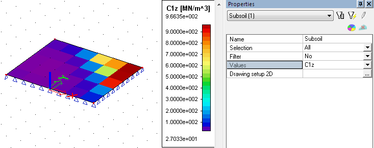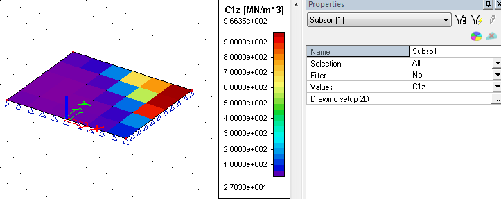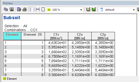 When the Both type of the support is used then the preview Subsoil – C parameters displays results of the soilin calculation and the 2D data viewer display data from the Subsoil library.