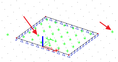 Green vertexes on the plate are centres of elements from 2D mesh. Two green vertexes outside the plate are inserting points from boreholes.