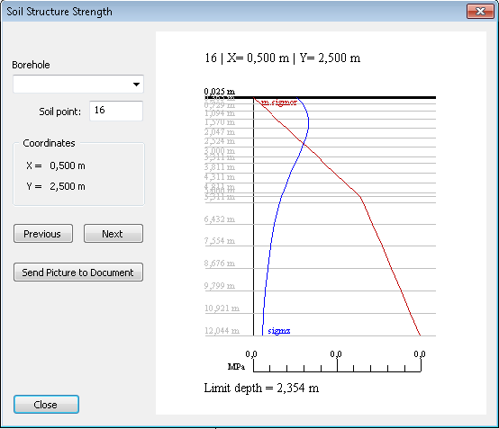 The “Subsoil – Other data” allow to display Soil structure strength diagram for calculated points. The points are displayed by the action button “Soil stress diagram”.