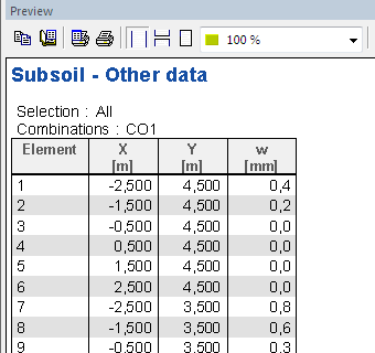 The table is displayed in the Subsoil – other data results. The preview table contain values w for each node.