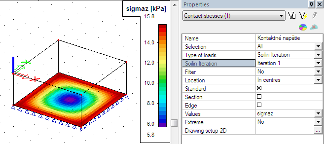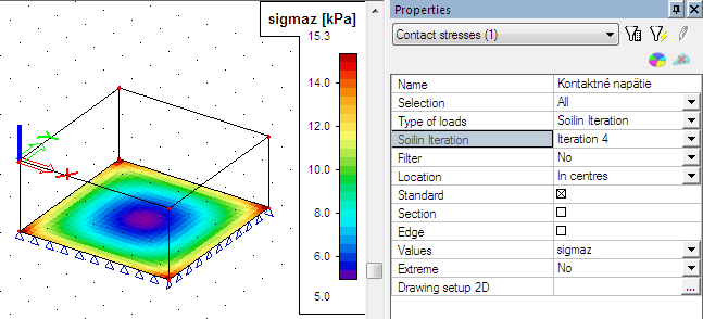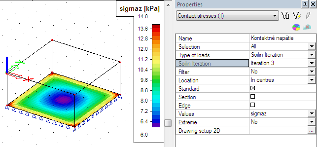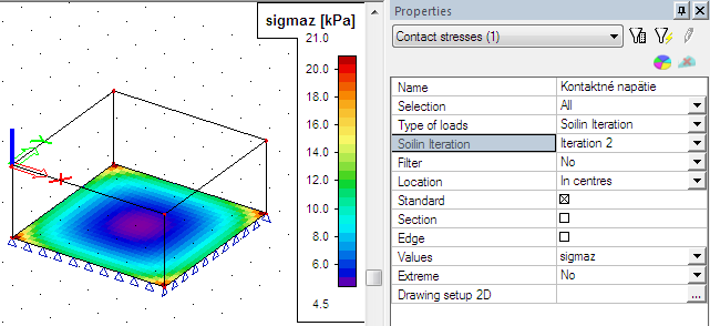 When the soil-in won’t finish its iteration process in a standard way, the calculation ends after the predefined number of cycles (the solver setup). User can display the contact stresses on the plate for each cycle separately so he is able to find the problem.