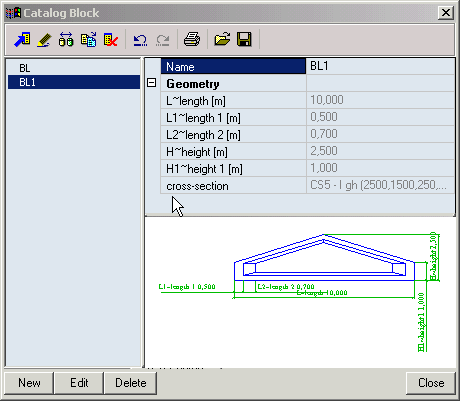 The Catalogue block manager is one of the managers integrated in SCIA Engineer and its layout and operation are identical to other SCIA Engineer Managers.