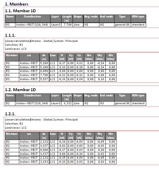 Chaptermaker is a named feature known also from old document. It enables easy automatic generation of chapters according to logical links between tables. It enables to generate e.g. separate tables with list of beams for each cross section or generate tables with internal forces for each defined load combination.