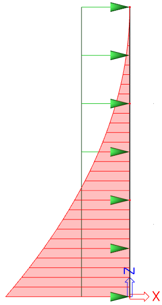 Left: Typical static wind load case, 1 set of values (bending moment in this case), no envelope