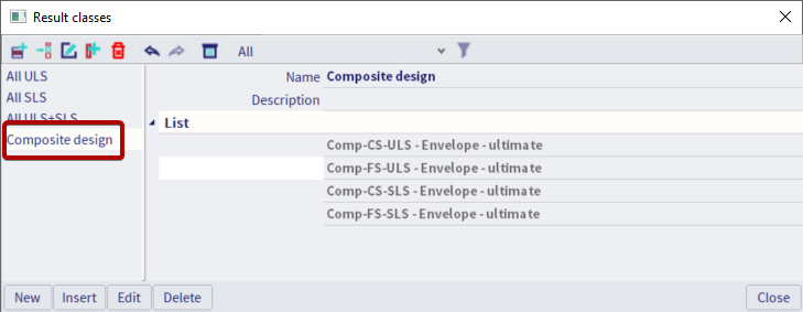 After load cases and combinations have been created as specified above, the load combinations must be put into a load class. It is important that the class contains the four required combinations.